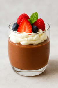 - Copa de mousse de chocolate con nata montada y frutos rojos