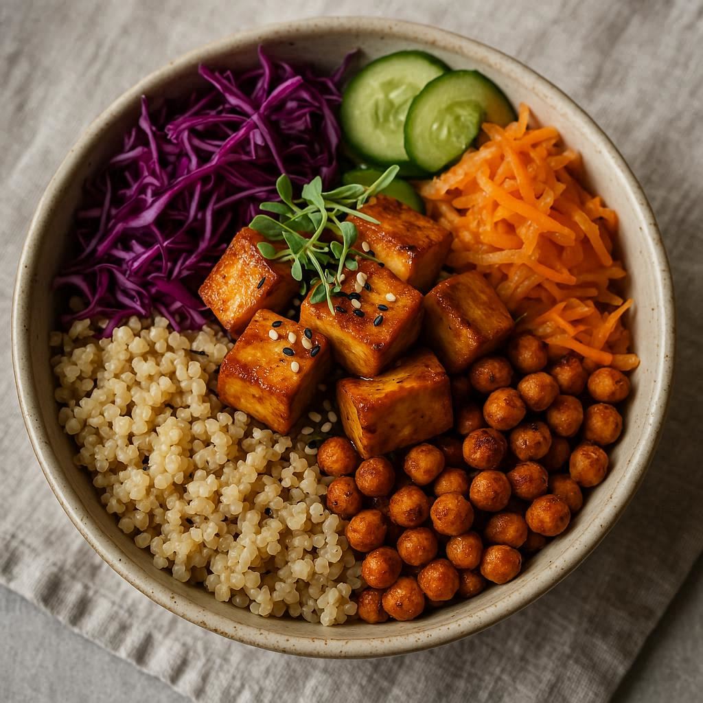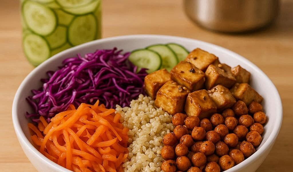 Aprende a preparar un Bowl de Colores Fermentado y Proteína Vegetal, saludable, colorido y lleno de sabor. Receta rápida y nutritiva.