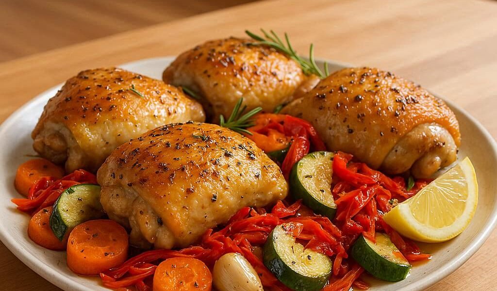 Pollo al Horno con Verduras y Hierbas Aromáticas