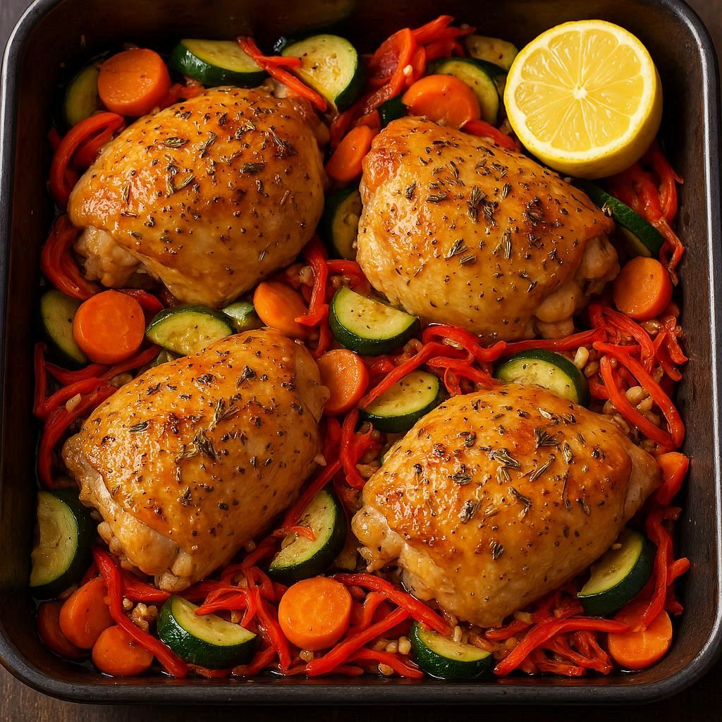 Este pollo al horno es jugoso, lleno de sabor y acompañado de verduras asadas. Ideal para una comida completa y nutritiva, fácil de preparar y perfecta para cualquier día de la semana.
